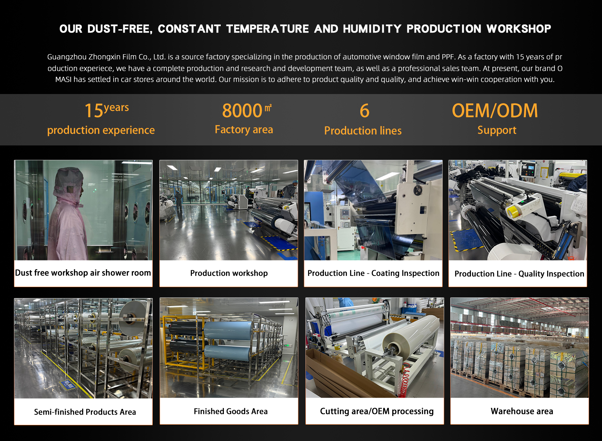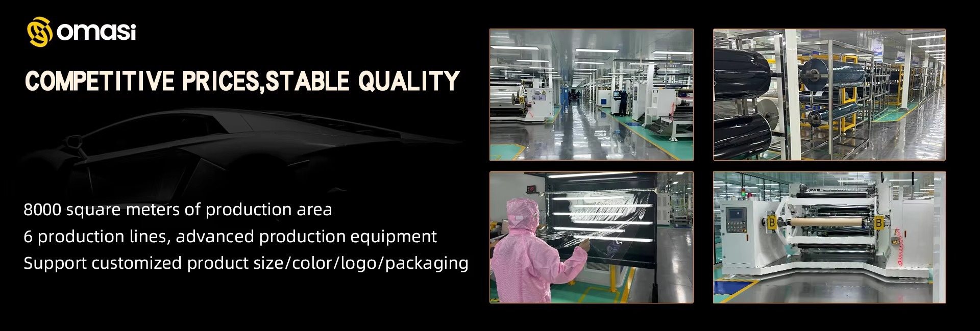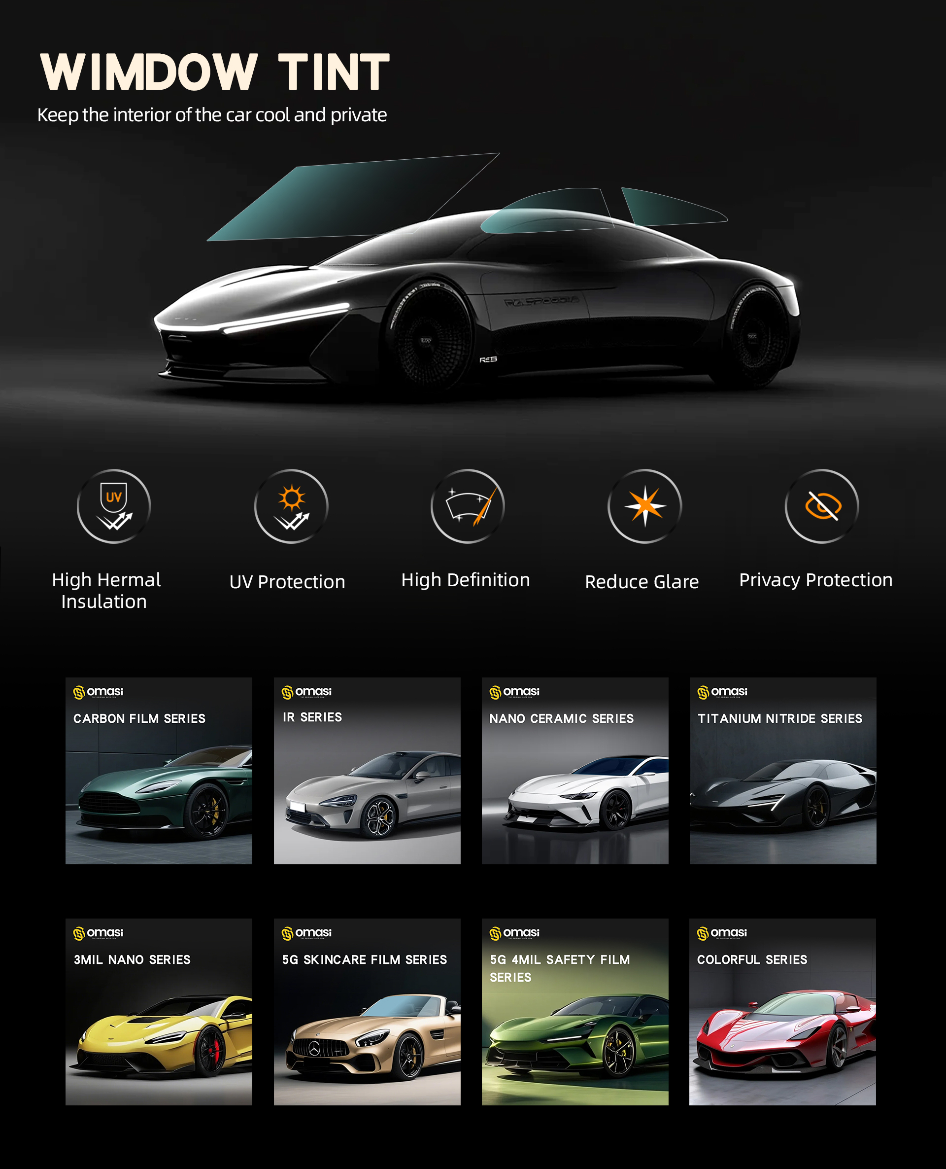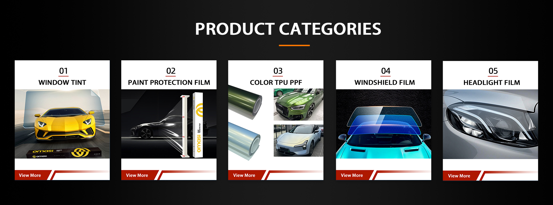 Productos principales:Película de tinte de ventana de coche, película de protección de pintura de coche, película de ventana arquitectónica, película de lámpara, película de techo solar