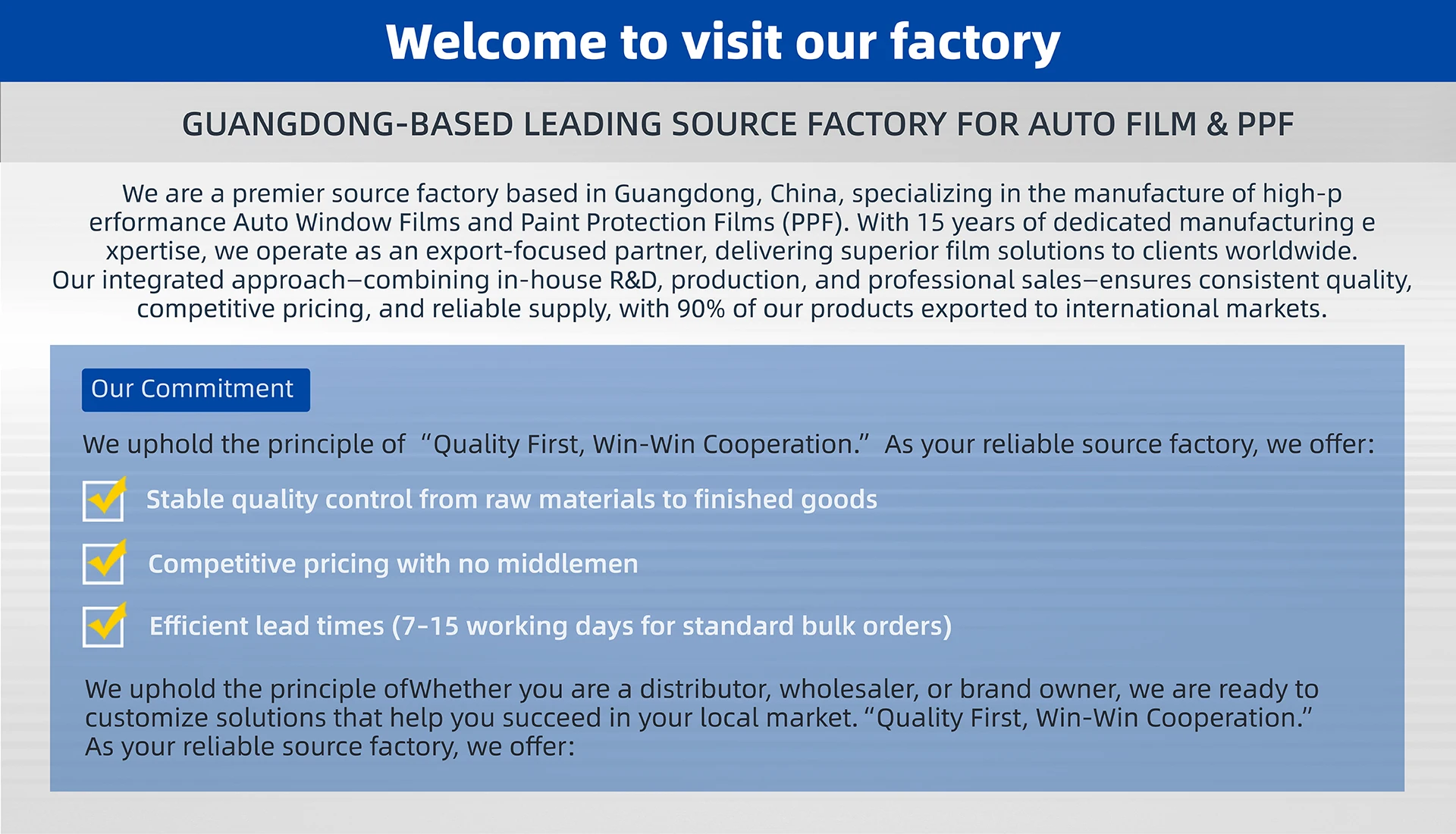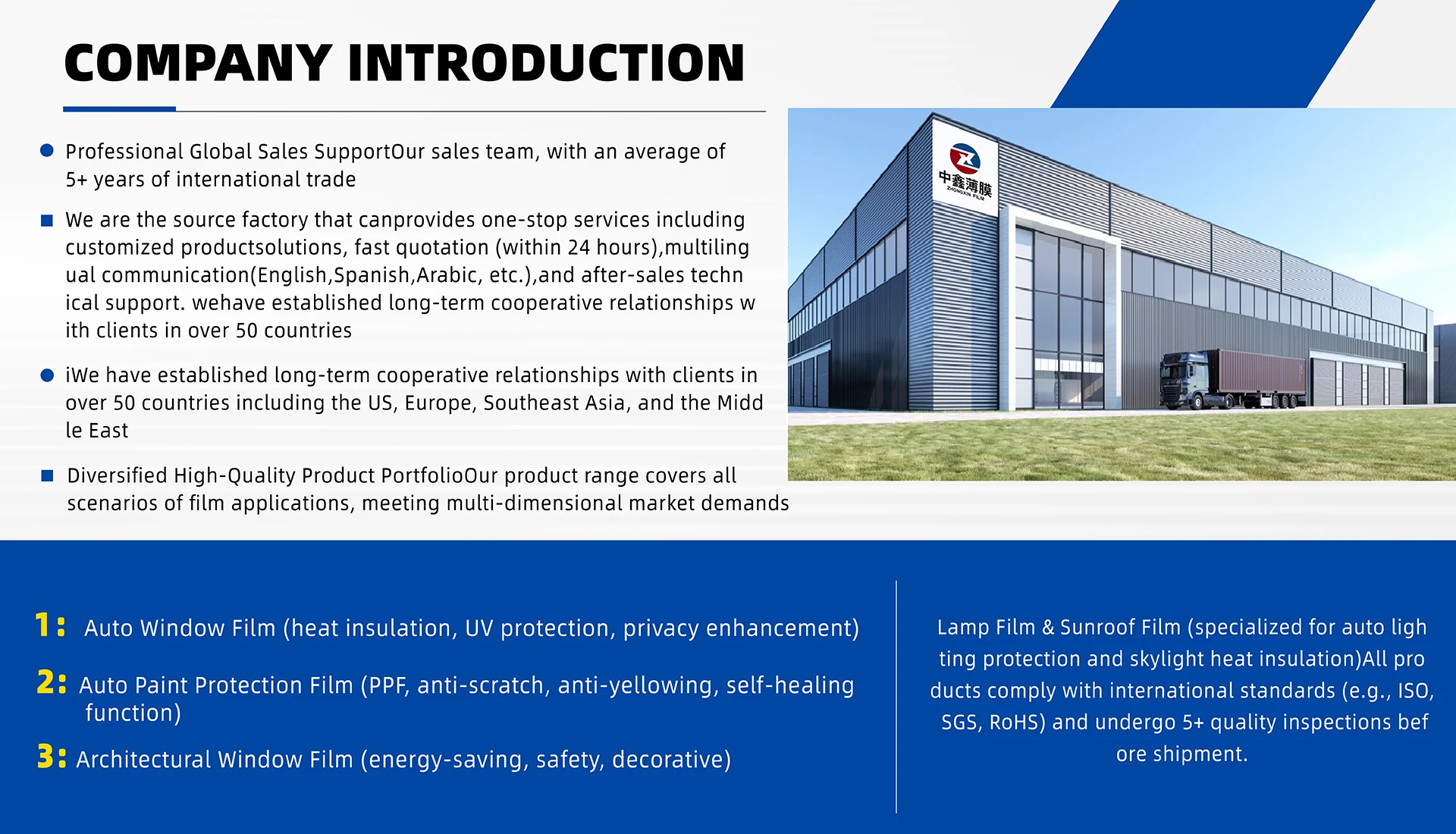 Produk utama: Film Warna jendela mobil, Film pelindung cat mobil, film jendela arsitektur, film lampu, film atap matahari